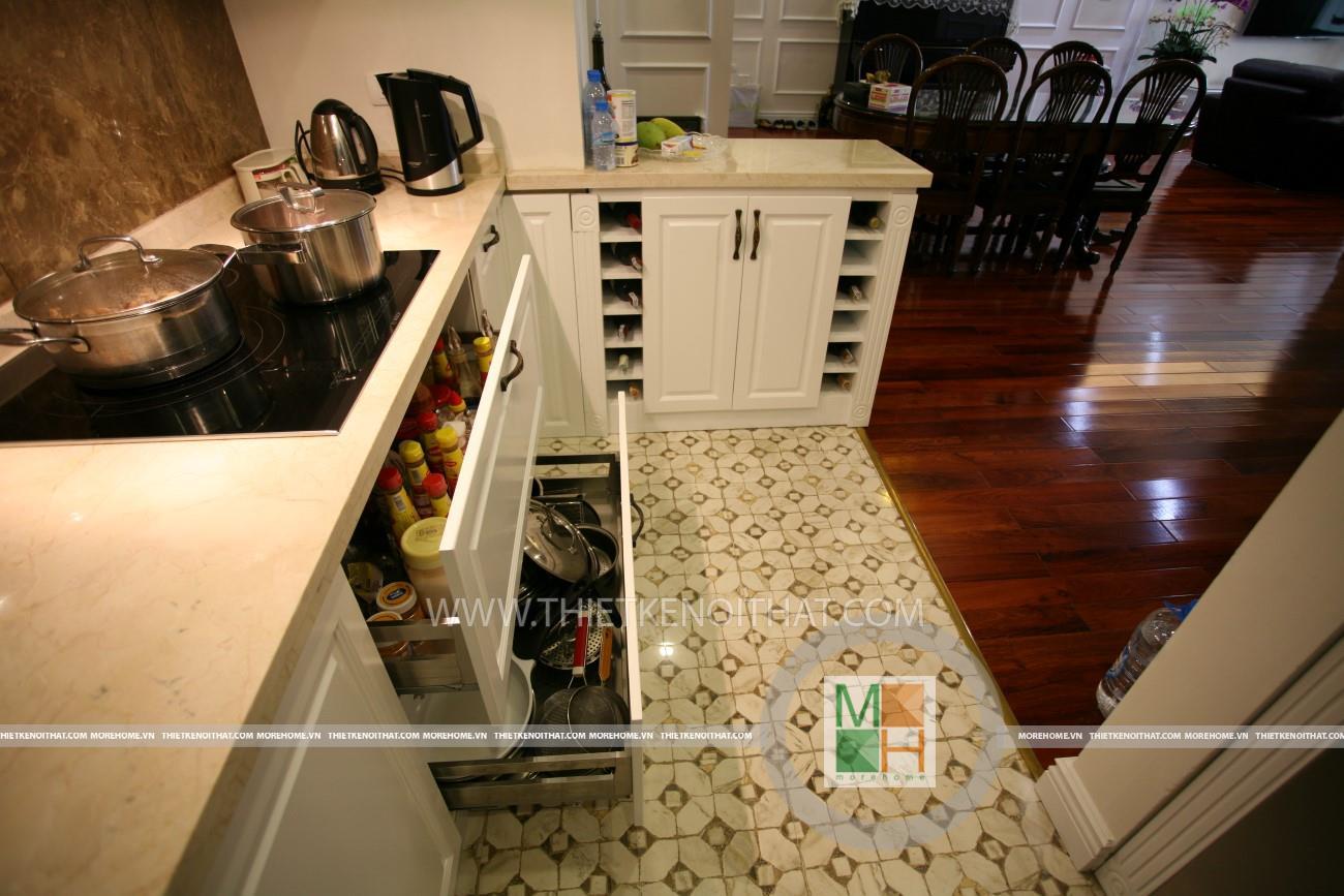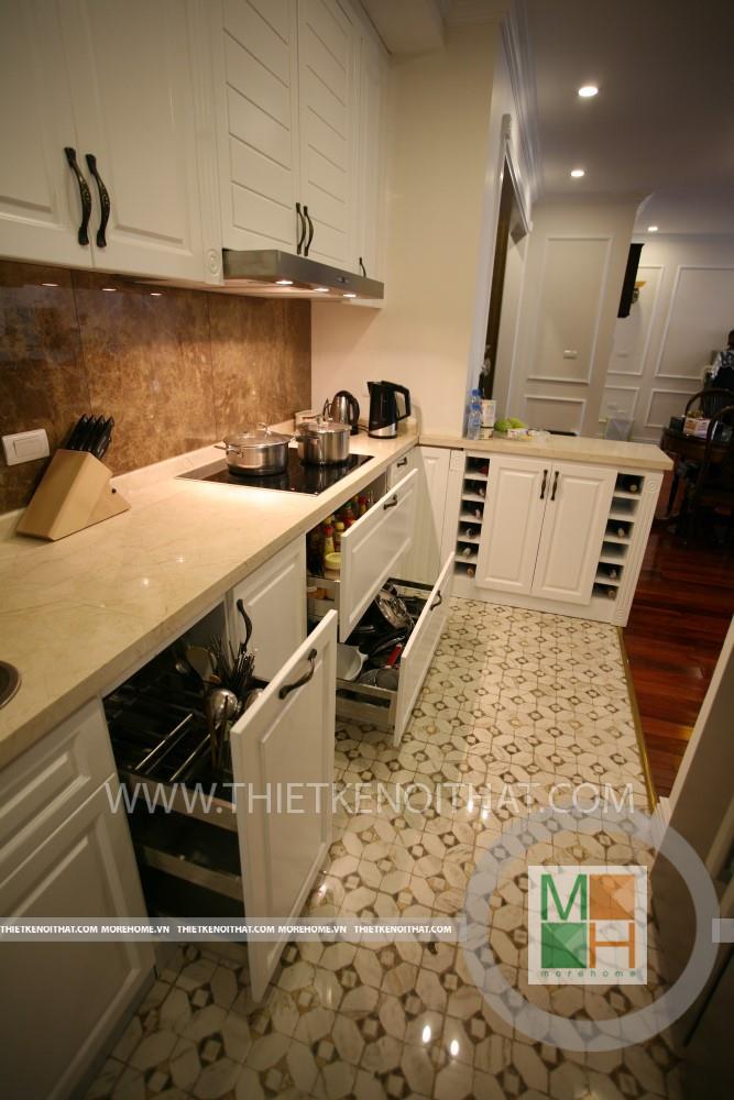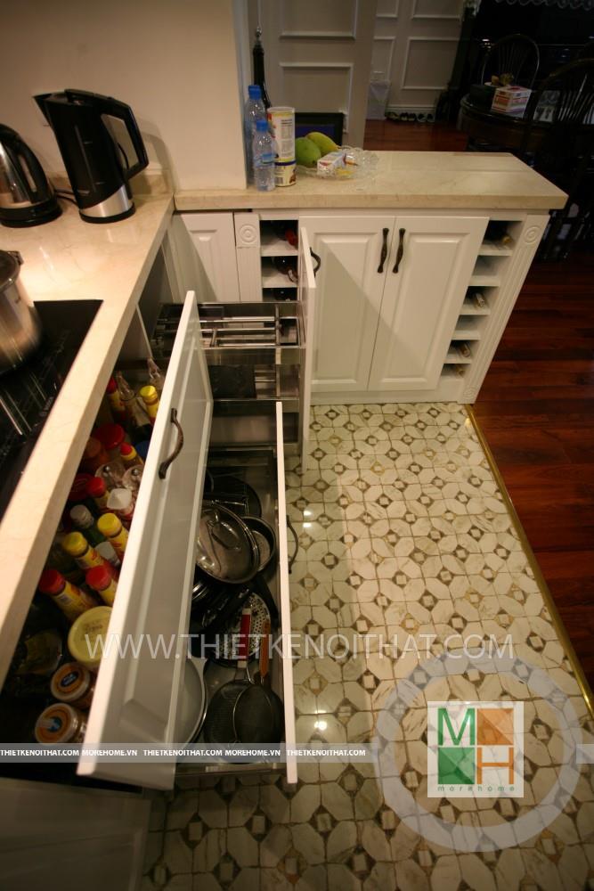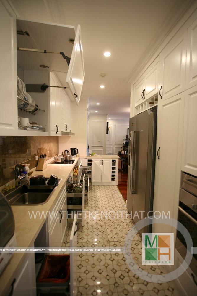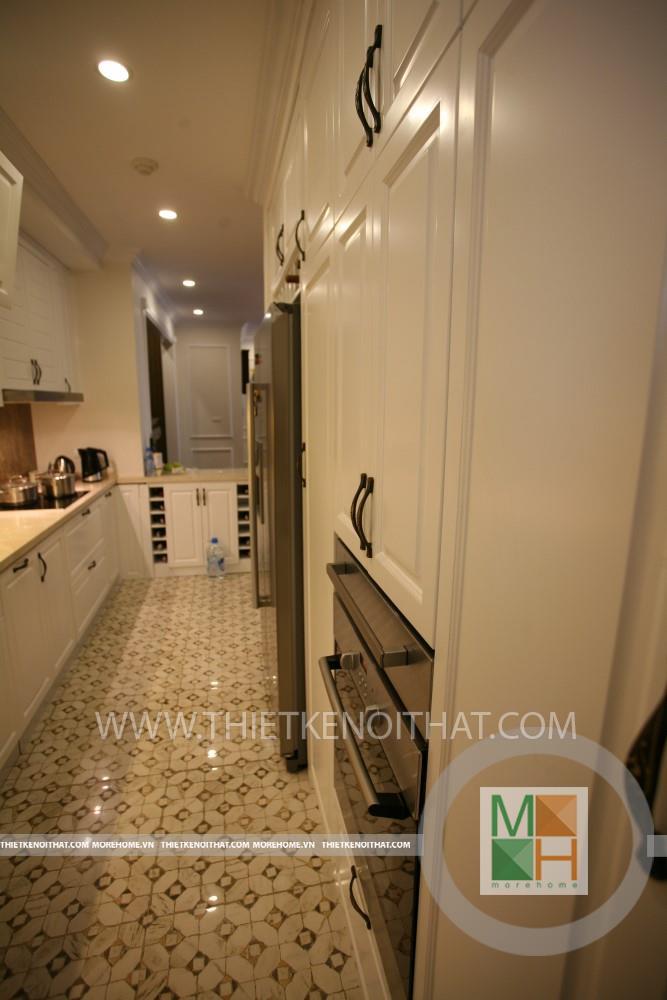 Đặt chân tới không gian bếp điều đầu tiên khiến bạn nhận thấy là sự tiện nghi, sang trọng và vô cùng ngăn nắp. Với thiết kế phòng bếp hiện đại, gia đình anh tuấn đã sở hữu một căn bếp với những điều ấn tượng nhất. Sự tiện nghi là điều rất cần thiết đối với căn bếp bởi không gian này chính là nơi mà các mẹ, các chị trổ tài nấu những bữa cơm ngon cho gia đình. Và căn hộ này đã được thiết kế để đáp ứng nhu cầu cần thiết đó.