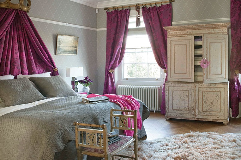 Đây là một không gian phòng ngủ rất đẹp và được tạo điểm nhấn bằng tông màu hồng đậm. Nhưng ấn tượng nhất có lẽ phải kể đến chiếc tủ xinh xắn được kê sát tường.