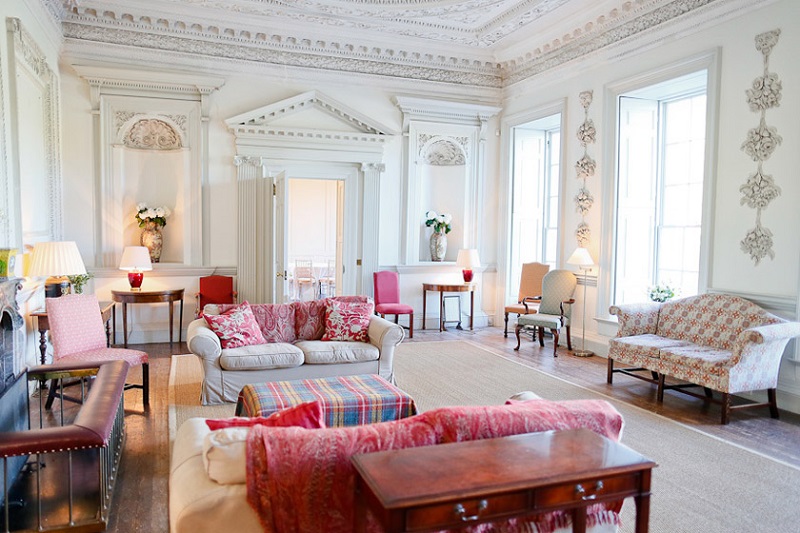 Nhiều người nghĩ với thiết kế biệt thự cổ điển sang trọng như thế này thì thiết kế nội thất cũng phải có tông màu sang trọng như trắng, xanh lam, nâu xám… Thế nhưng với thiết kế nội thất phòng khách này thì hoàn toàn khác. Màu sắc ngọt ngào như trong những câu chuyện cổ tích là những gì mà người ta cảm nhận được.