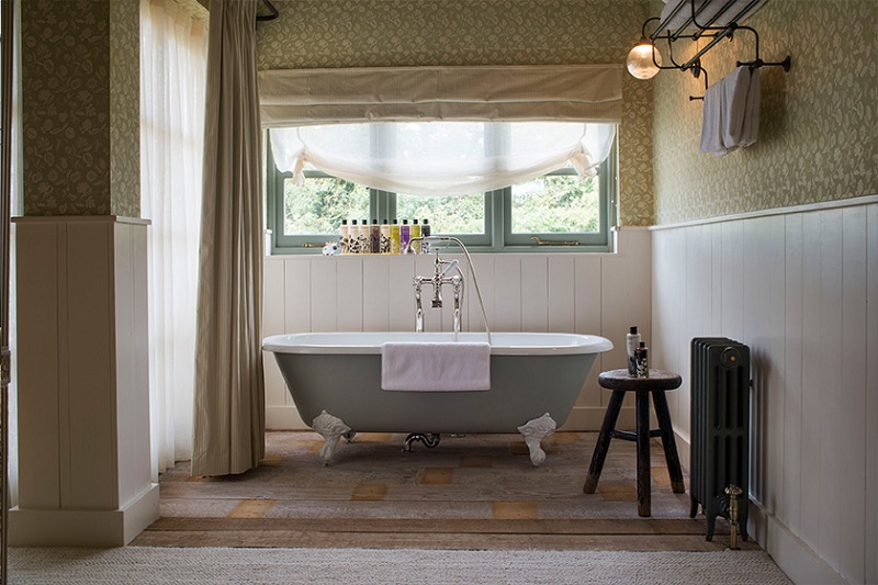 Đây thực sự là một không gian lý tưởng để thư giãn. Một căn phòng tắm rộng mở, không kín đáo như hầu hết những phòng tắm khác. Đó sẽ không phải là nơi đơn thuần để gột rửa bụi bẩn trên cơ thể mà sẽ là nơi để gột rửa cả những phiền ưu trong lòng. Một khung cửa sổ rộng, một chiếc rèm buông mỏng manh, một chiếc ghế ba chân mộc mạc… khiến cho bạn thấy dễ chịu đến thế.