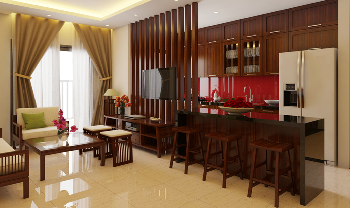 Một thiết kế nội thất bằng gỗ gụ đẹp.