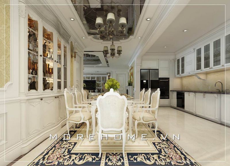 Bàn ăn tân cổ điển thiết kế cầu kì ấn tượng, làm không gian ăn uống thêm lung linh