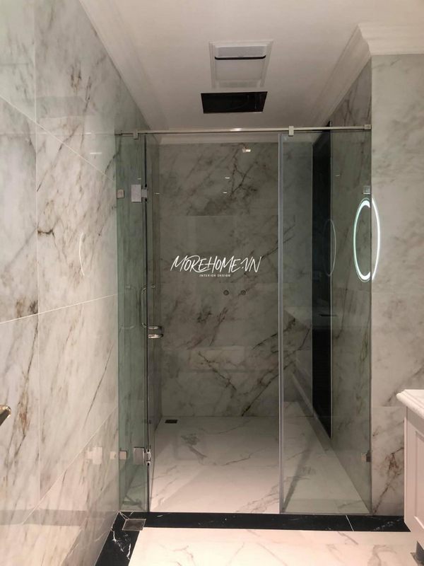 Thi công vách kính phòng tắm đứng cửa lùa cao cấp cho biệt thự, nhà phố.