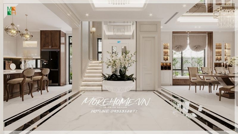 >> Có thể nói, thiết kế nội thất tân cổ điển là một trong những dịch vụ hàng đầu của thương hiệu Nội thất MOREHOME, khởi đầu với ấn tượng đột phá trên thị trường khi có rất nhiều công trình được đánh giá cao ngay từ thời điểm xuất phát như: Keangname, Times City, Royal City, Vinhomes Riverside,... Nếu quý vị có nhu cầu về phong cách thượng lưu này, hãy liên hệ với chúng tôi để chuyên gia tư vấn.