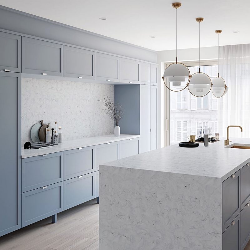 Đặc biệt hơn cả là xu hướng sử dụng quartz – một loại vật liệu tổng hợp mới mẻ nhưng đầy tiềm năng trong ngành thiết kế. Quartz không chỉ có vẻ ngoài tương tự như marble hay granite mà còn vượt trội về khả năng chống vi khuẩn và dễ vệ sinh.