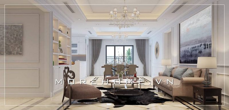 Phong cách tân cổ điển đã được sử dụng để trang trí đồ nội thất trong không gian phòng khách biệt thự, nhà phố, tạo ra một vẻ đẹp độc đáo.