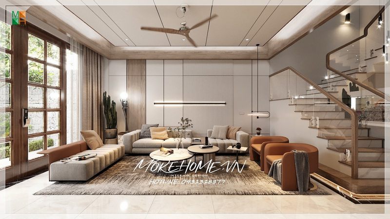 Bên cạnh đó, việc sử dụng màu sắc và ánh sáng cũng đóng vai trò quan trọng trong việc mở rộng cảm giác không gian. Màu sáng như trắng, kem hay pastel giúp tạo cảm giác thoáng đãng, trong khi ánh sáng tự nhiên từ cửa sổ sẽ làm cho không gian phòng khách trở nên sống động hơn. Ngoài ra, các yếu tố trang trí như gương lớn có thể phản chiếu ánh sáng và tạo chiều sâu, khiến cho căn phòng trở nên rộng rãi hơn. Khi kết hợp các yếu tố này, thiết kế phòng khách không chỉ đáp ứng nhu cầu sử dụng mà còn trở thành một tác phẩm nghệ thuật thể hiện cá tính của gia chủ.